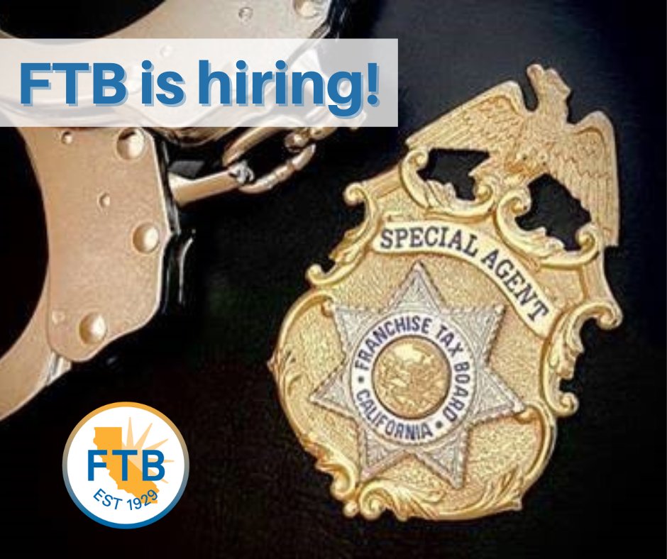 FTB is hiring! As a FTB Criminal Investigation Bureau Special Agent, you will be a part of an elite team that investigates tax fraud/evasion, asset concealment & other related financial crimes. For more info visit: