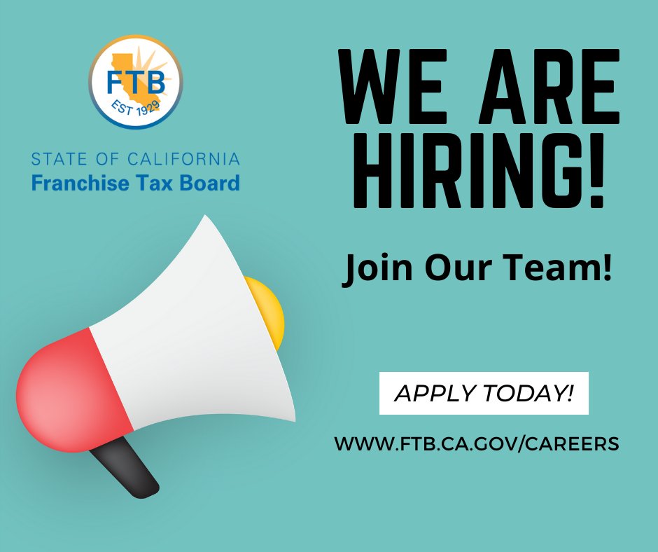 FTB’s Accounts Receivable Management Division is looking to fill multiple positions. We are seeking dependable individuals with a positive attitude and the ability to provide great customer service!