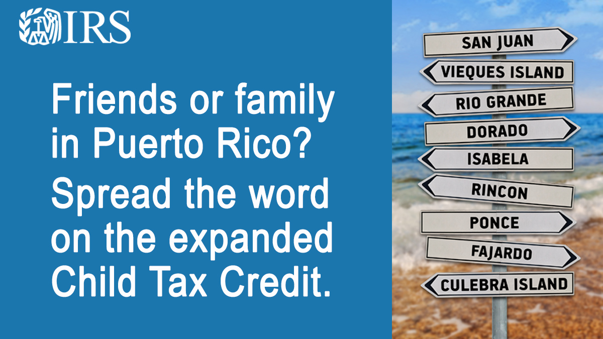 Have friends or family in #PuertoRico? Encourage them to visit the #IRS site and check out the eligibility rules for the Child Tax Credit. https://t.co/UnaRVpCE3k https://t.co/4EzJspG0AK