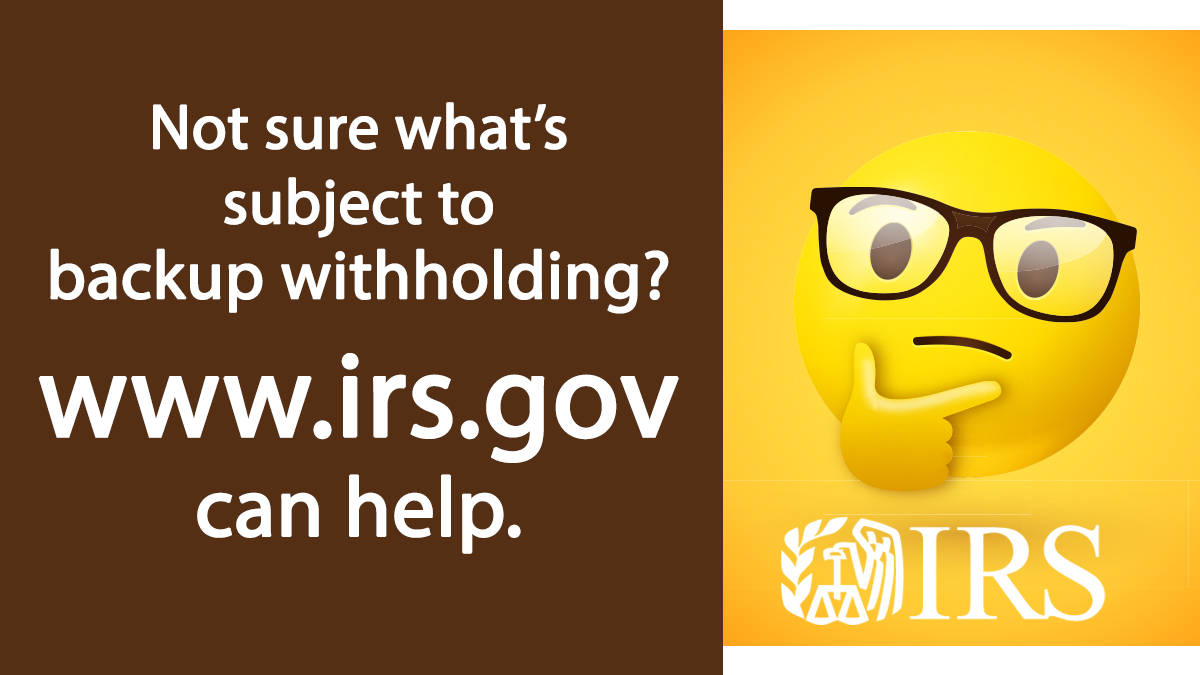 Interest payments, dividends, rents and gambling winnings are just a few things subject to backup withholding. See #IRS info at: https://t.co/lmNdexNtAI. https://t.co/KrhEyz8ekl