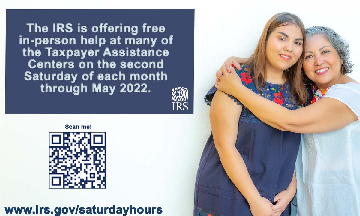 #IRS is offering additional time for people to receive in-person help on special Saturdays at many Taxpayer Assistance Centers in several cities. See a listing of events at https://t.co/Y7UN7AS1h5 https://t.co/EGwHno0VfU