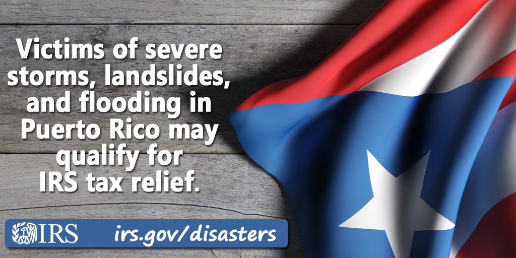 #IRS relief to victims of severe storms, flooding, and landslides postpones several tax deadlines for many taxpayers in Puerto Rico. This means affected taxpayers will now have until June 15, 2022. https://t.co/6C2dPE8Qhr https://t.co/L9edXOEagj