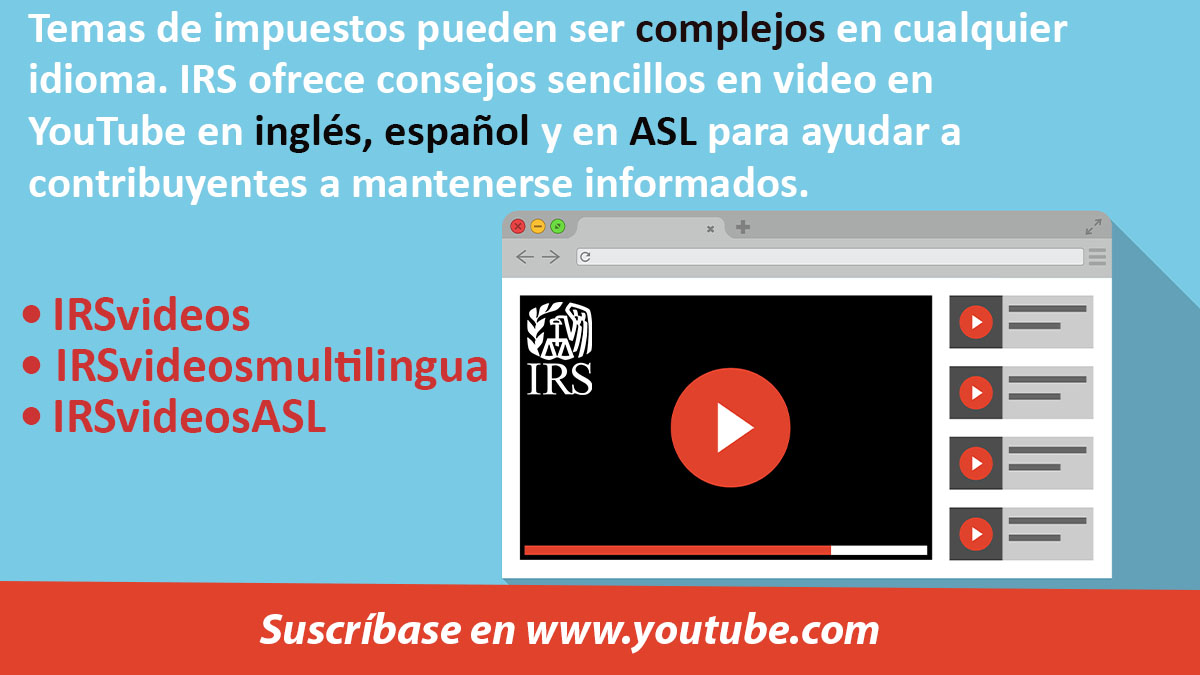 ¿Necesita información tributaria concisa y fácil de entender en #español? Suscríbase al canal del #IRS en @Youtube https://t.co/AjS2wHaRpi https://t.co/wkrnKnGFza