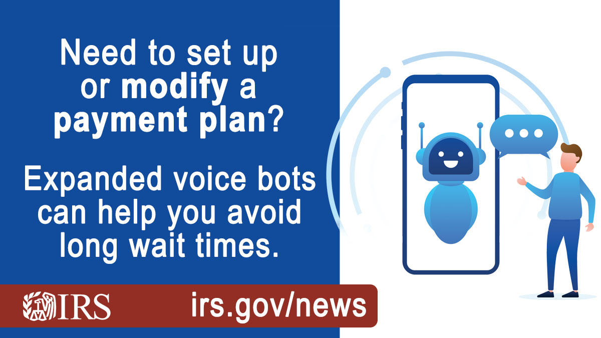 Need to set up or modify an #IRS payment plan? Expanded voice bots can help you avoid long wait times. Get started by setting up a PIN to easily verify your identity: https://t.co/YrkVRso1iZ https://t.co/W9c9iLx1rS