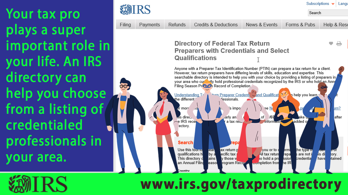 #TaxPros have differing levels of skills, education and expertise. The #IRS searchable directory is intended to help you with your choice: https://t.co/HqF2j0msjF https://t.co/f2pAg2SDfI