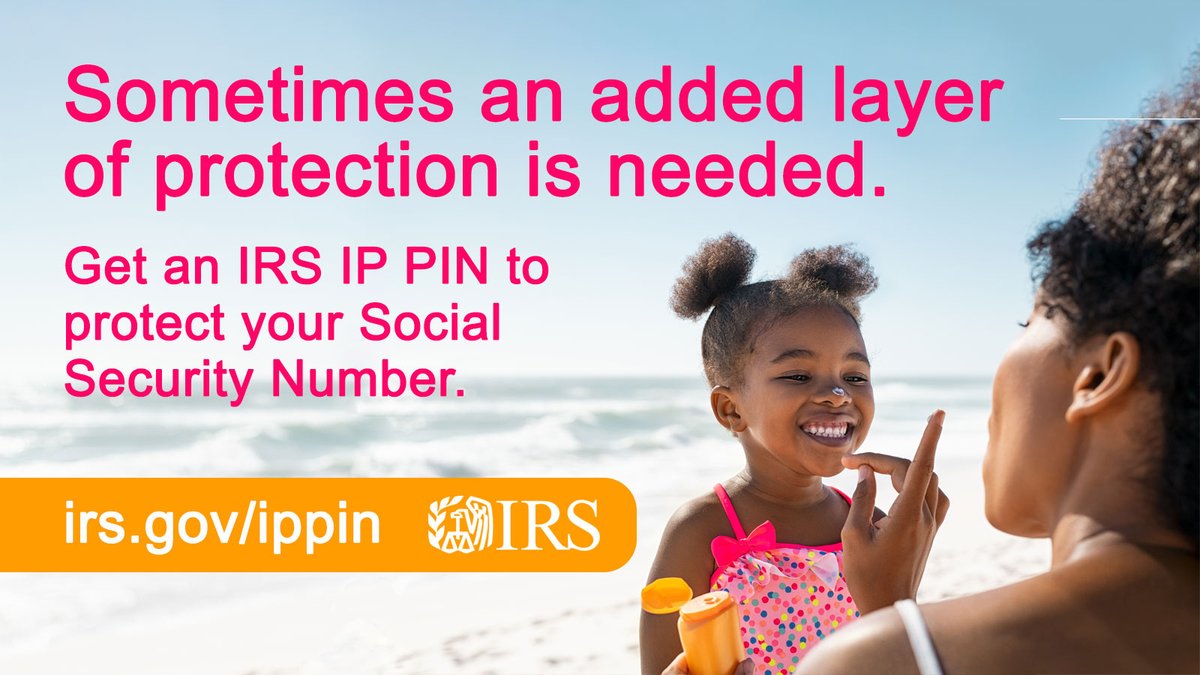 You protect yourself and your loved ones from the sun with sunscreen. The #IRS encourages you to protect your information with an IP PIN. To learn more or to sign up, visit: https://t.co/VKD301xplR https://t.co/rhnxX7djZu
